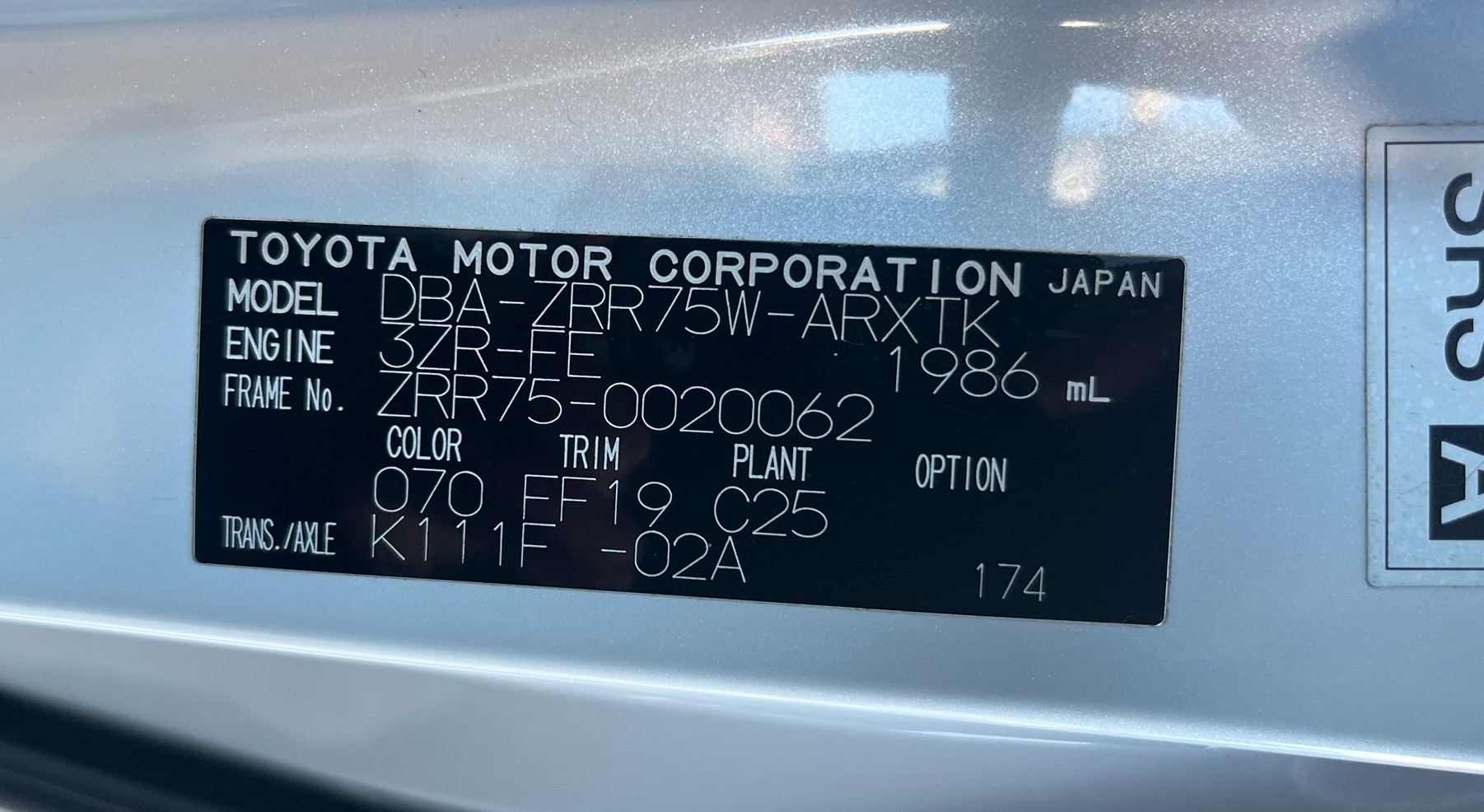 | ModelCode | DBA-ZRR75W | Body Type | Van/Minivan |